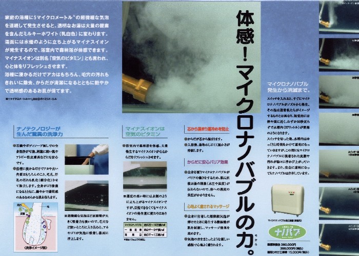 ともかく、気持ちが、良く入浴しております。リラクゼーションは、マイナスイオンは、マイクロバブルがはじける時に、発生して、滝の、近くでのマイナスイオン量の、約10倍で、イライラを、鎮めストレス解消して家族のみなさんで、楽しめます。
